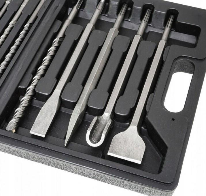 - Zawiera najpotrzebniejsze rozmiary wierteł SDS-PLUS do betonu oraz 4 dłuta o różnych wielkościach i kształtach - doskonale uzupełnia akcesoria potrzebne do kucia i wiercenia