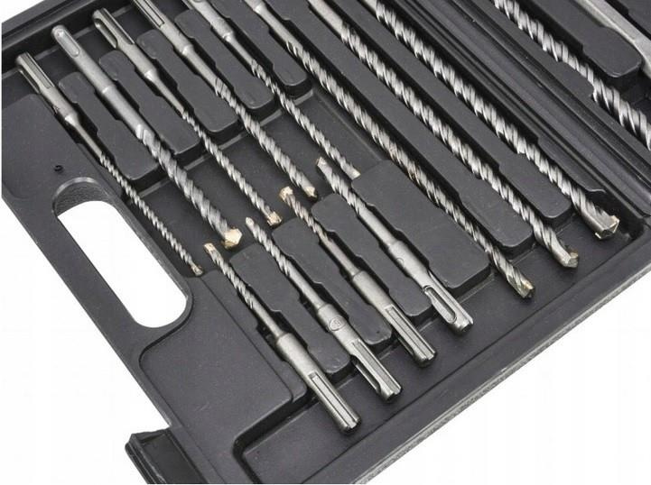 Zestaw zawiera 13 najpotrzebniejszych wierteł SDS+