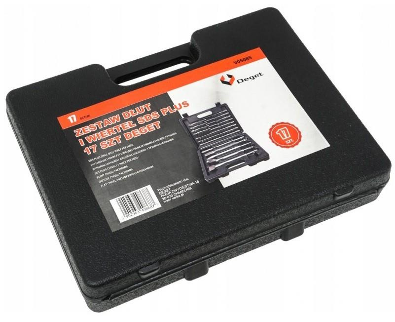 Zestaw DEGET składa się z 17 elementów wierteł, szpiców i dłut z mocowaniem SDS Plus które są w pełni kompatybilne ze wszystkimi młotowiertarkami posiadającymi mocowanie SDS Plus. Zestaw mieści się w eleganckiej poręcznej walizce transportowej która ułatwia przechowywanie.