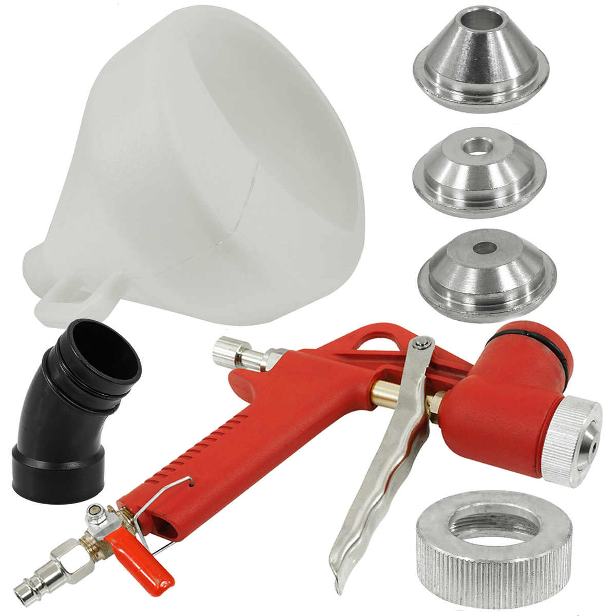 Uniwersalny pistolet pneumatyczny do malowania, tynkowania, gipsowania. Jest to wersja pistoletu wyposażona w zawór kulkowy (przy szybkozłączce), który umożliwia całkowite odcięcie powietrza podczas procesu malowania lub tynkowania. Pistolet przeznaczony jest do malowania farbą emulsyjną, farbami klejowymi, do bielenia wapnem jak również do nanoszenia tynków akrylowych na docieplenia, idealnie nadaje się do nanoszenia tynków, gładzi gipsowych, można nim robić fakturę czyli tzw. „baranka” na ścianie. Pojemnik pistoletu zakryty jest do połowy co w połączeniu z kolankiem kątowym ułatwia malowanie pod różnymi kątami, np. sufitów. Pistolet wykonany jest całkowicie z aluminium więc jest lekki i wygodny w eksploatacji, łatwy w czyszczeniu i wytrzymały. Dzięki zamontowanemu zaworowi kulkowemu pistolet może współpracować z małymi kompresorami (można odłączać powietrzne).