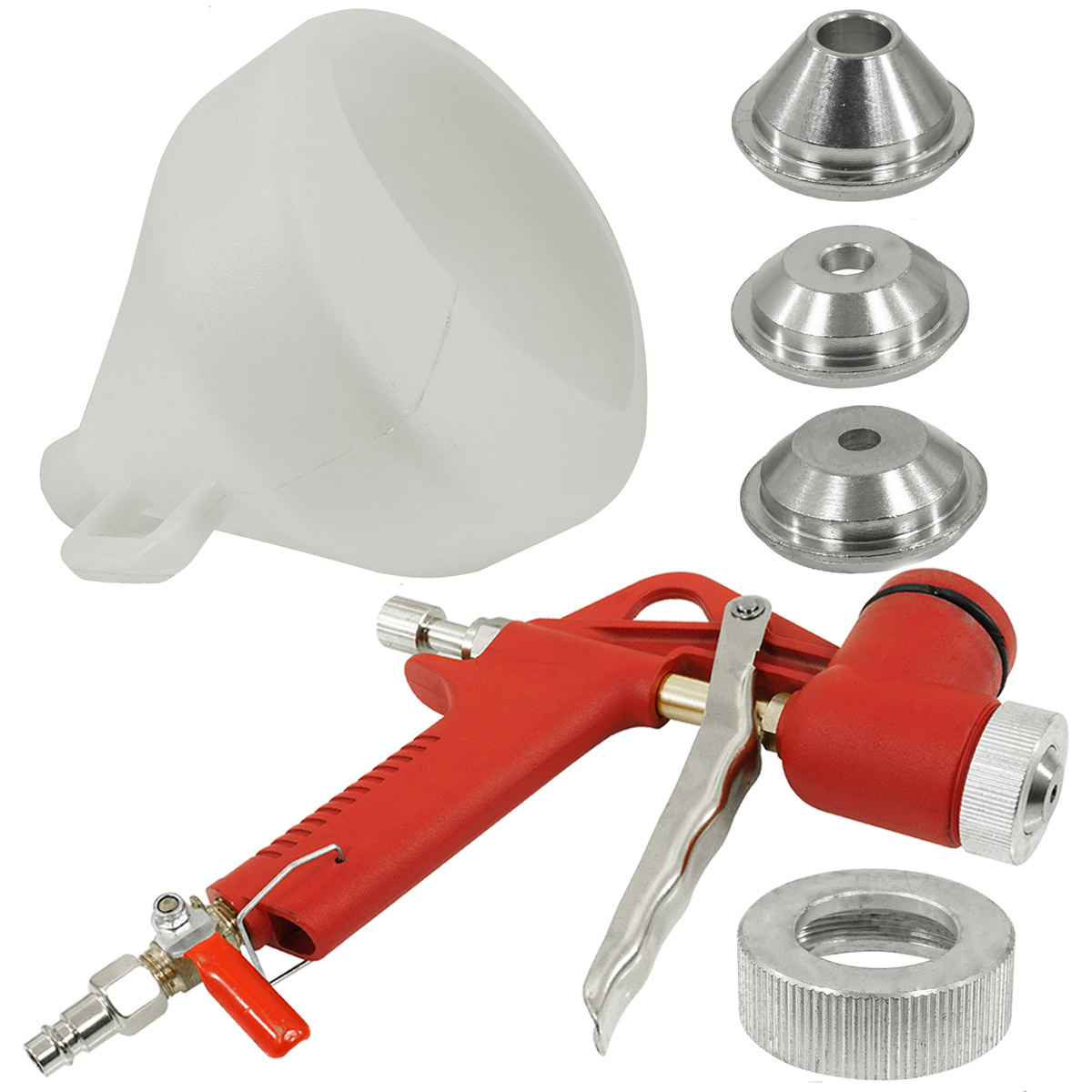 Uniwersalny pistolet pneumatyczny do malowania, tynkowania, gipsowania. Jest to wersja pistoletu wyposażona w zawór kulkowy (przy szybkozłączce), który umożliwia całkowite odcięcie powietrza podczas procesu malowania lub tynkowania. Pistolet przeznaczony jest do malowania farbą emulsyjną, farbami klejowymi, do bielenia wapnem jak również do nanoszenia tynków akrylowych na docieplenia, idealnie nadaje się do nanoszenia tynków, gładzi gipsowych, można nim robić fakturę czyli tzw. „baranka” na ścianie. Pojemnik pistoletu zakryty jest do połowy co umożliwia malowanie sufitów bez stosowania żadnych dodatkowych kolanek, pokryw itp. rozwiązań. Pistolet wykonany jest całkowicie z aluminium więc jest lekki i wygodny w eksploatacji, łatwy w czyszczeniu i wytrzymały. Dzięki zamontowanemu zaworowi kulkowemu pistolet może współpracować z małymi kompresorami (można odłączać powietrzne).