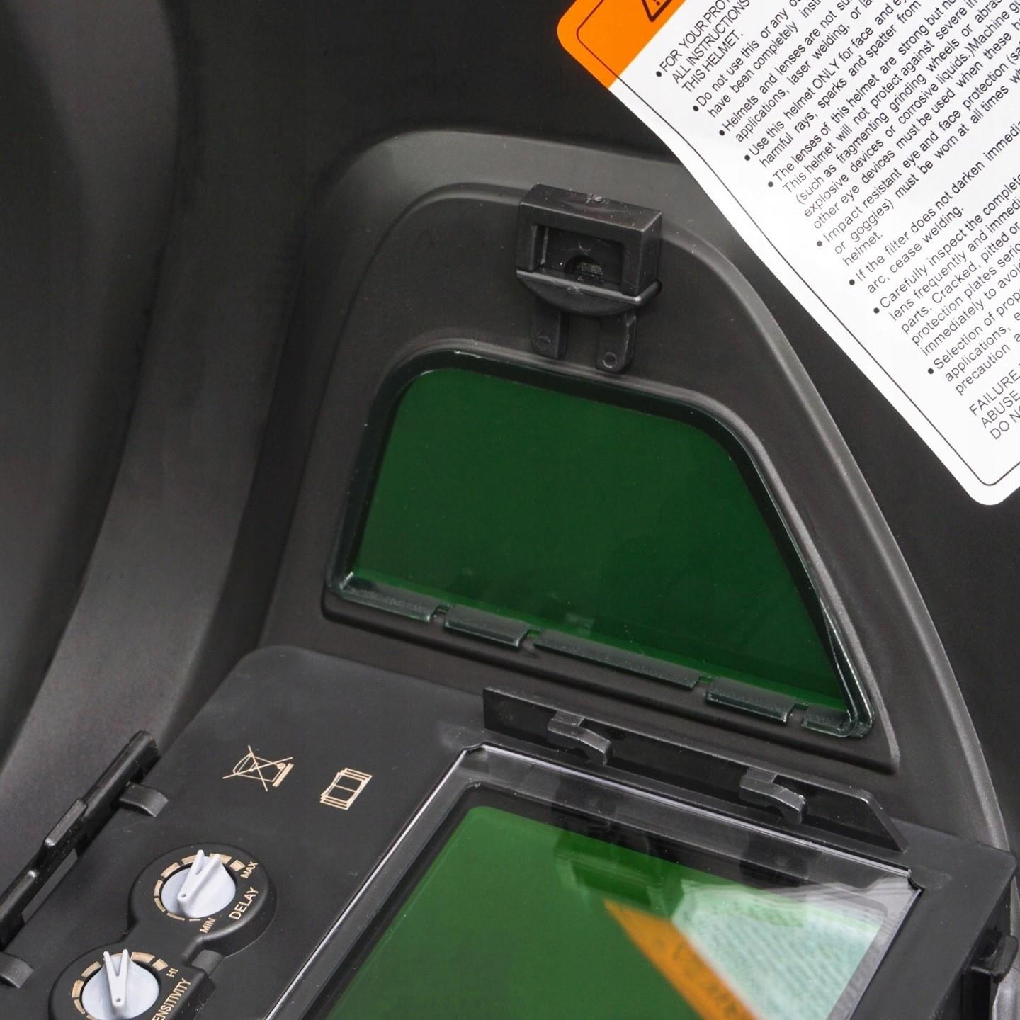 Specjalne czujniki umieszczone w kasecie filtrującej automatycznie identyfikują rozpoczęcie procesu spawania, uruchamiając funkcję samozaciemnienia. Po zakończeniu pracy filtr samoczynnie wraca do stanu rozjaśnienia. Filtr jest zasilany ogniwem słonecznym wspomaganym dwoma bateriami litowymi. Przyłbica o rozszerzonym polu widzenia, dzięki dwóm dodatkowym bocznym wizjerom.