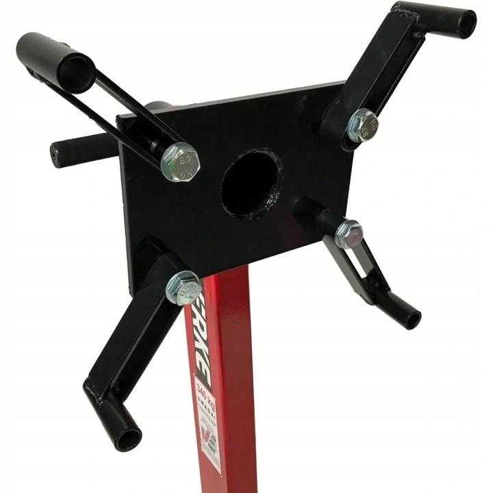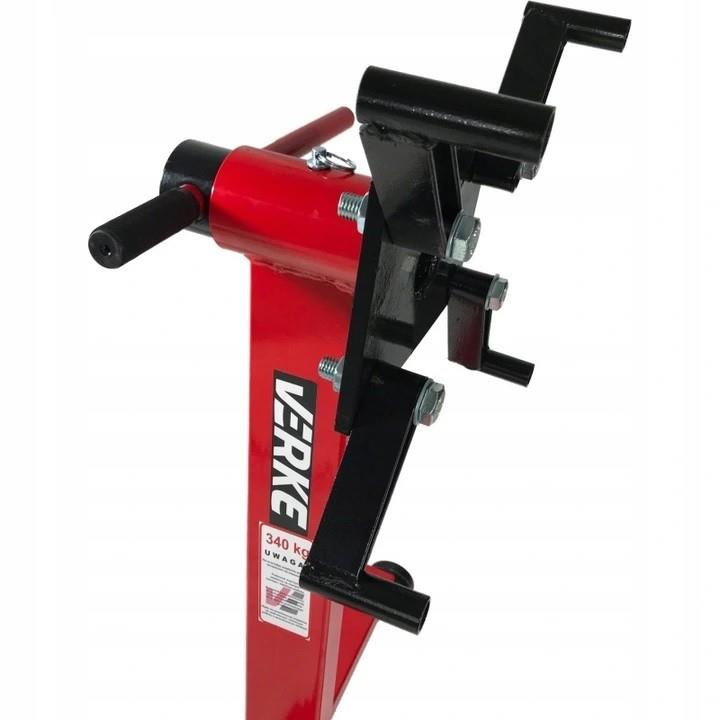 Stojak do obsługi silnika o nośności do 340kg VERKE posiada 3 metalowe koła - w tym 1 skrętne ułatwiające manewrowanie. Głowica obrotowa z czterema regulowanymi łapami umożliwia bezpieczne pozycjonowanie silnika w zakresie 360 stopni.