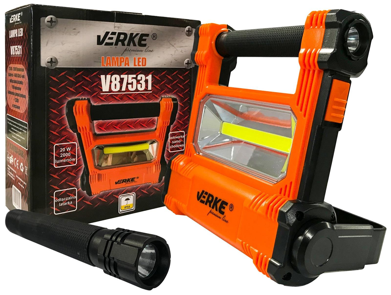 VERKE V87531 LAMPA HALOGEN BUDOWLANY LED AKU 20 W + LATARKA VERKE