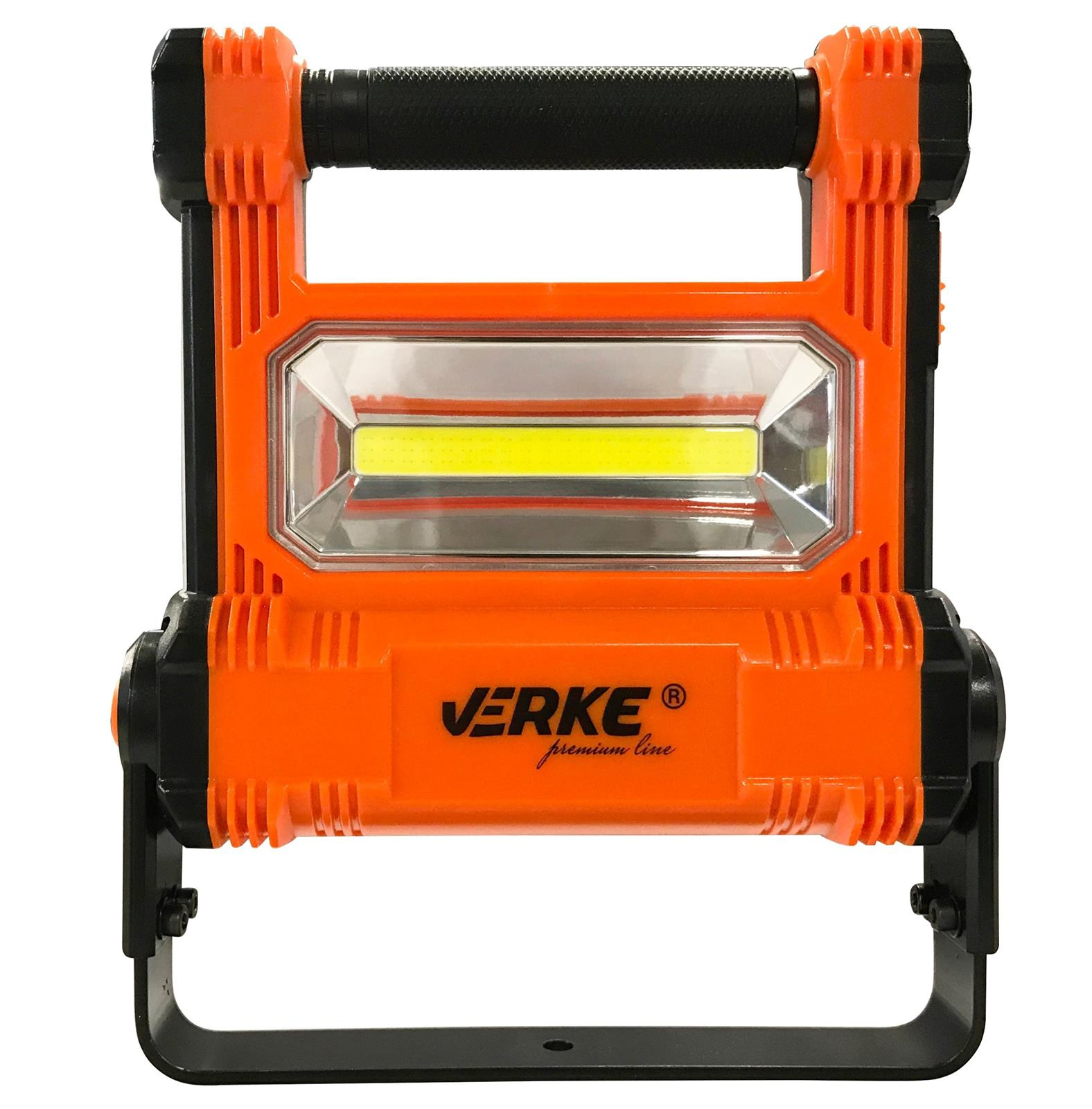 Profesjonalna lampa halogenowa LED COB z wbudowanym akumulatorem Li-ion, ładowarką samochodową i 230V VERKE premium line