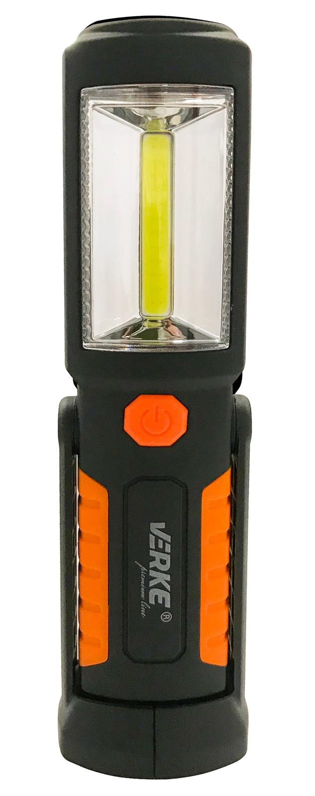 Dzięki zastosowaniu technologii LED COB (pasek diodowy) latarka daje dużo więcej światła w porównaniu do tradycyjnych a przy tym jest dużo bardziej oszczędna. Poręczna obudowa, urządzenie pewnie leży w dłoni. Pojemność akumulatora - 800mAh. Magnetyczna obrotowa podstawa z wbudowanym magnesem oraz zawieszka czynią latarkę bardzo uniwersalną i komfortową w użytkowaniu. Latarka posiada 2 źródła światła - pasek diodowy LED COB oraz światło punktowe z diodami led u góry lampki. Produkty firmy Verke zasłynęły w Polsce dzięki doskonałej jakości wykonania o autentycznych parametrach.