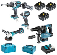 MAKITA COMBO DLX4104TJ1 DHP481 DHR243 DGA513 DTD153 3x5Ah