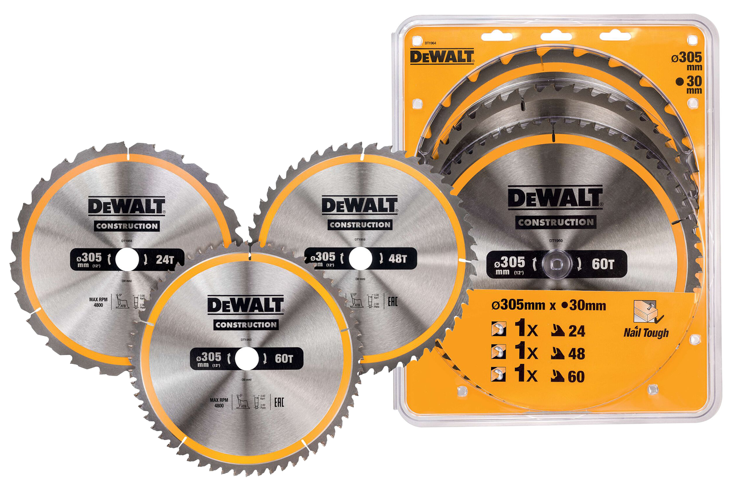 DEWALT DT1964 ZESTAW 3 TARCZ PILARSKICH CONSTRUCTION – 305 MM / 30 MM • 24/48/60 ZĘBÓW