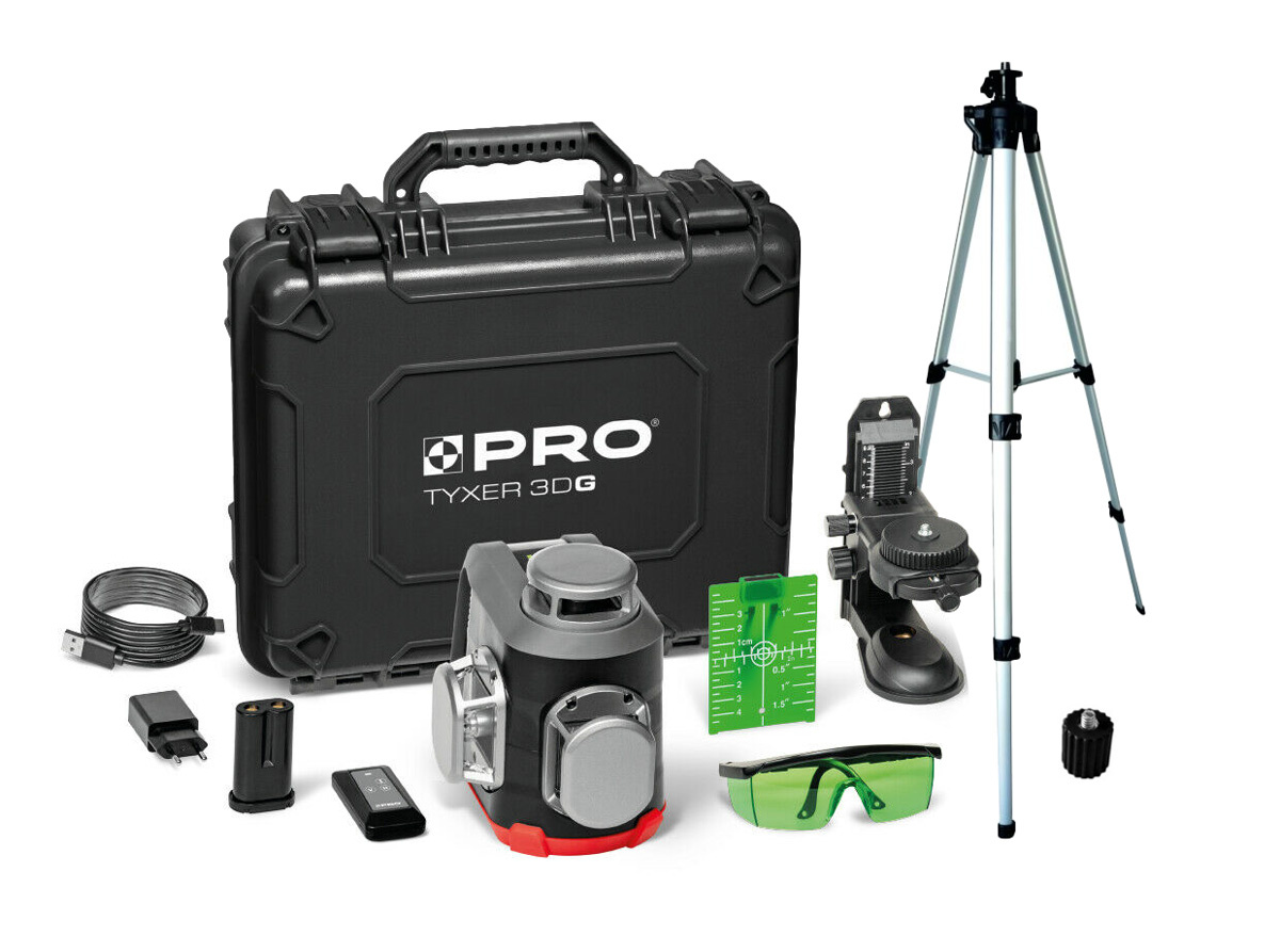 LASER TYXER 3DG ZESTAW PLUS WIELOLINIOWY KRZYŻOWY 3x360° - ZIELONA WIĄZKA + STATYW + ADAPTER 5/8” na 1/4" + DETEKTOR LASEROWY DWL-02G ZIELONY