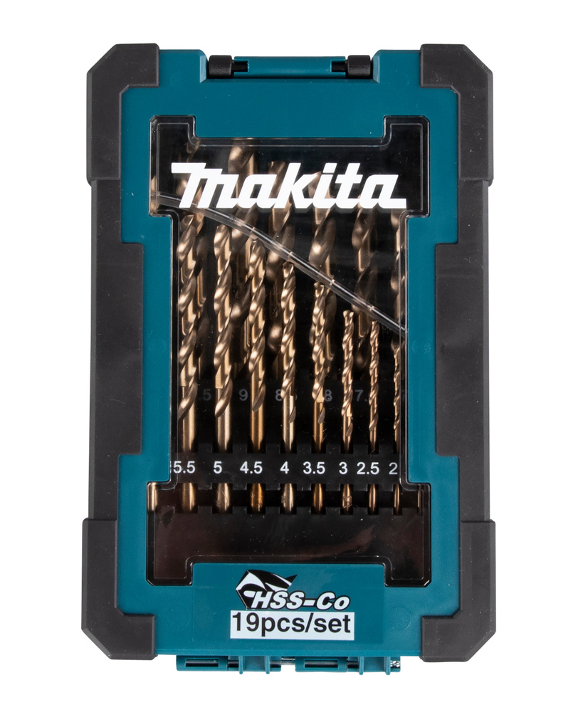 - Zestaw 19 szt. wierteł HSS-Co do metalu 1-10mm Makita D-67561 jest wykonany ze stali M35 z 5% zawartością kobaltu.