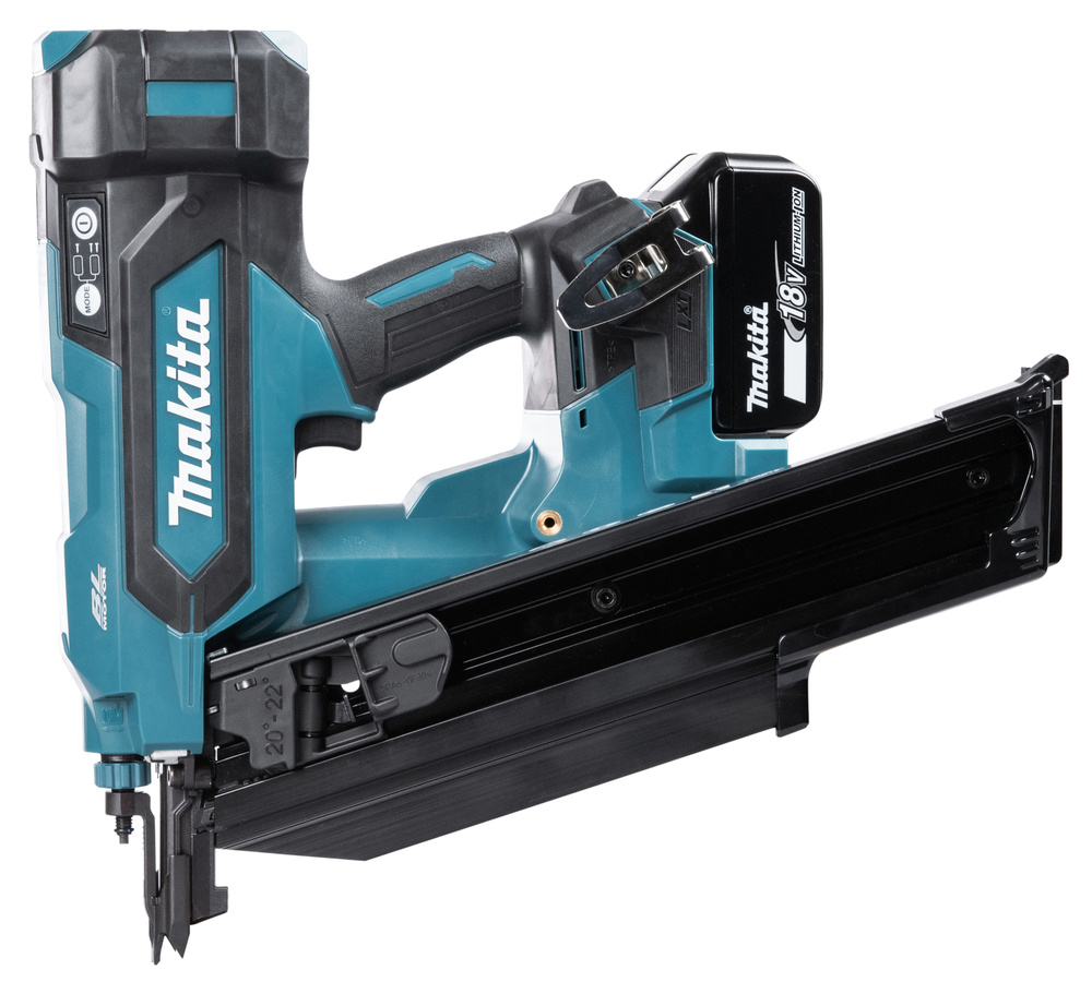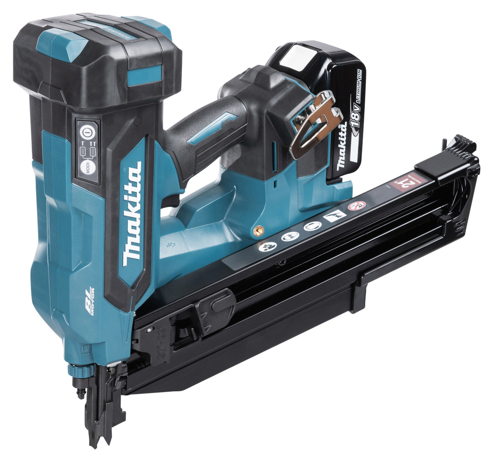 Urządzenie oferuje 2 tryby pracy: pojedynczy strzał i sekwencyjne wbijanie stykowe, z funkcją blokady "pustego" strzału i diodą LED z opóźnionym wygaszaniem. Antypoślizgowa końcówka stykowa umożliwia precyzyjne wbijanie nawet pod kątem, a wysoka wydajność pozwala na ok. 1000 gwoździ na jednym ładowaniu akumulatora BL1860B. Kąt nachylenia magazynka 20-22° zwiększa komfort. W tej wersji dostarczana jest bez akumulatora, pakowana w karton. Nie współpracuje z akumulatorami BL1811G, BL1813G, BL1815G (bez elektroniki) oraz BL1815 (18V / 1,3 Ah).