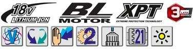 • Dostarczana w walizce systemowej MAKPAC (4) z 3 akumlatorami BL1850B (18 V / 5,0 Ah) i ładowarką DC18RC