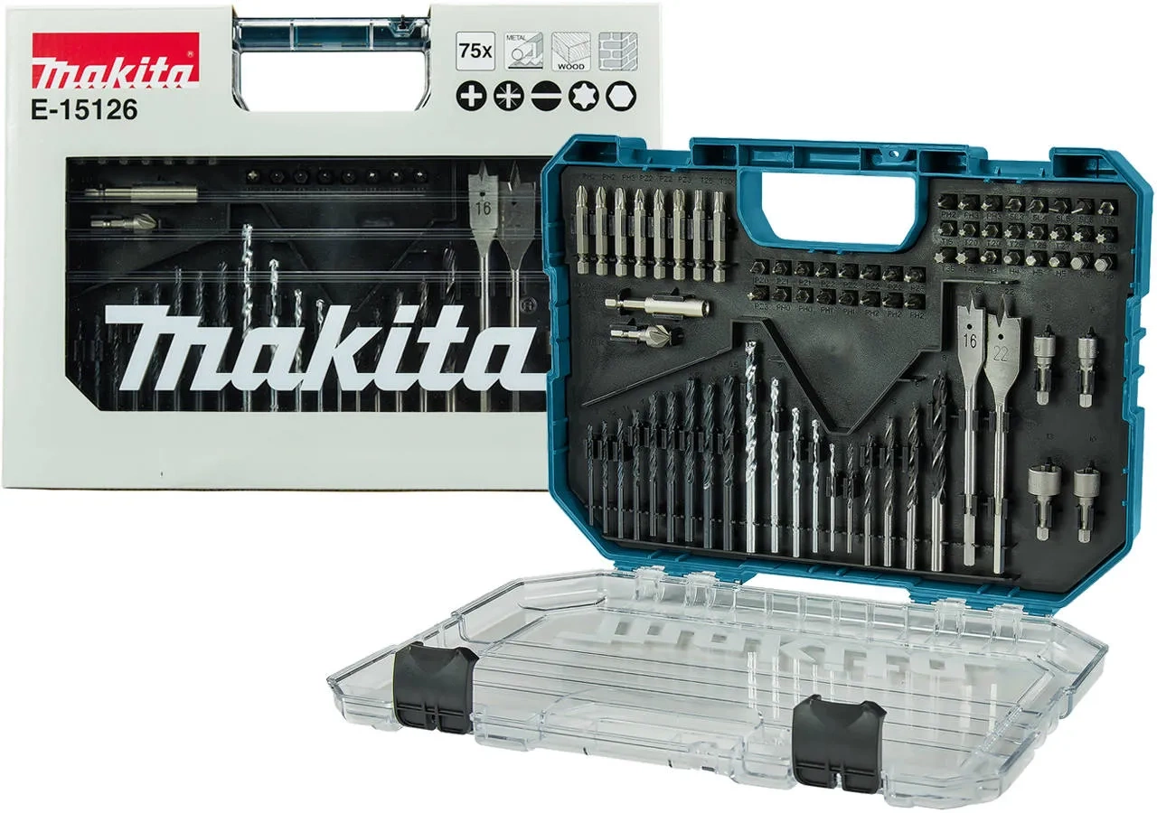 Makita E-15126 to wszechstronny zestaw 75 akcesoriów w praktycznej walizce, idealny do wiercenia i montażu w różnych materiałach. Wysoka jakość wierteł i końcówek oraz magnetyczny uchwyt zapewniają efektywność i wygodę. Zainwestuj w Makita i ciesz się kompleksowym wyposażeniem!