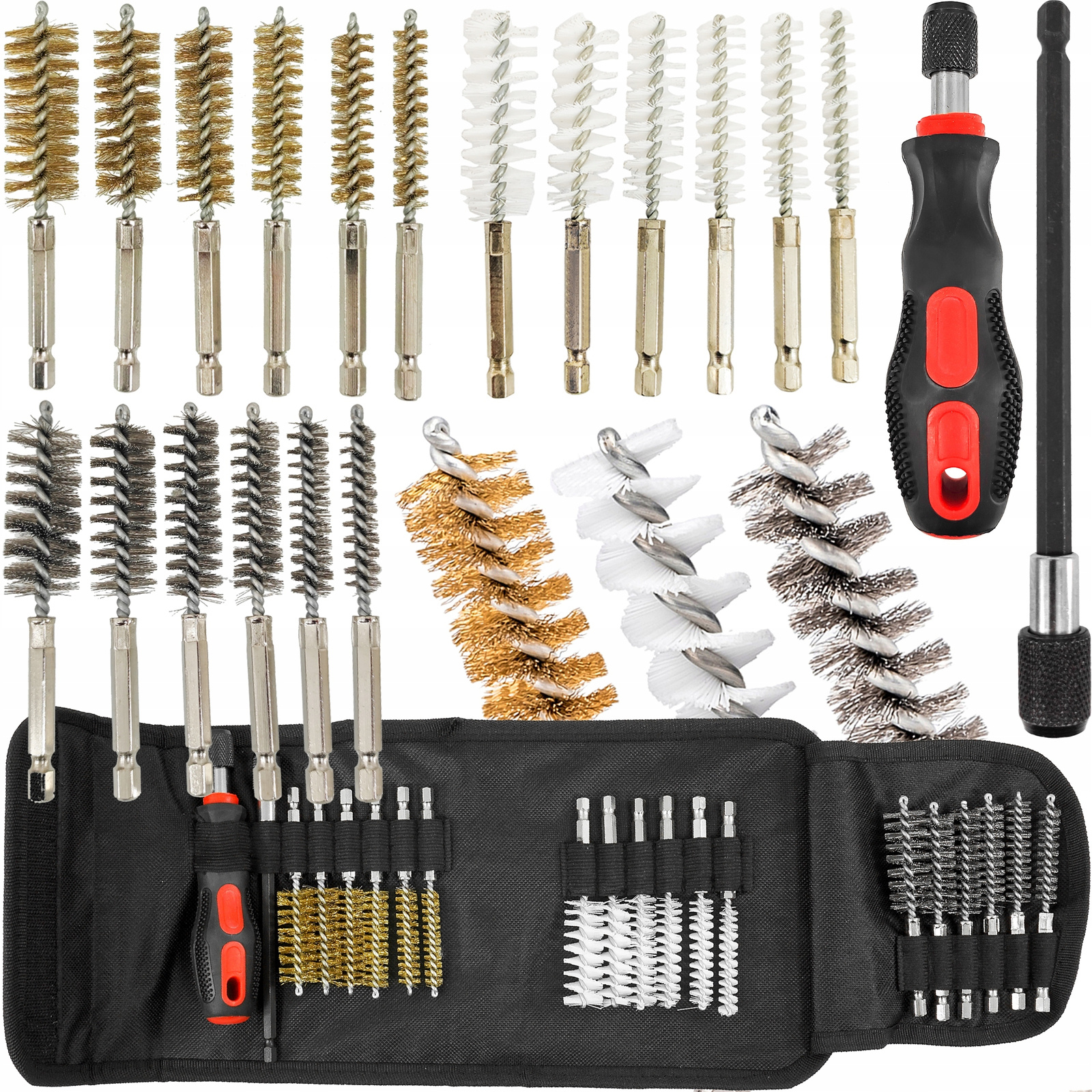 Szczotki z napędem 1/4” są kompatybilne z wiertarkami i wkrętarkami, co znacząco ułatwia i przyspiesza proces czyszczenia. Całość zapakowana jest w praktyczne etui, które zapewnia łatwe przechowywanie i transport.