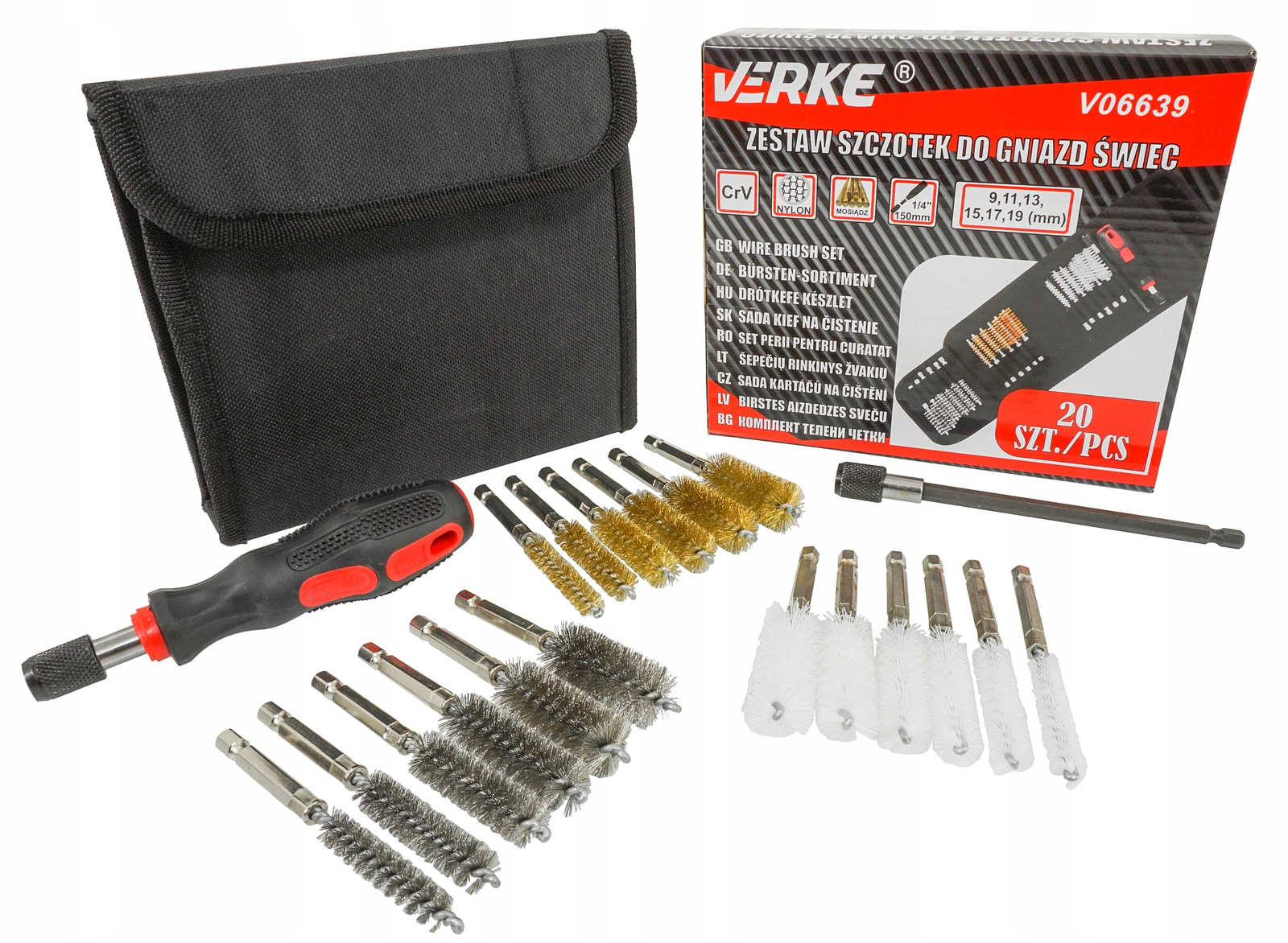 VERKE V06639 SZCZOTKI DO CZYSZCZENIA GNIAZD WTRYSKIWACZY ŚWIEC ŻAROWYCH ZESTAW SZCZOTEK