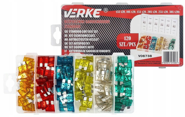 VERKE V06738 BEZPIECZNIKI PŁYTKOWE 5A-30A 120 SZT.
