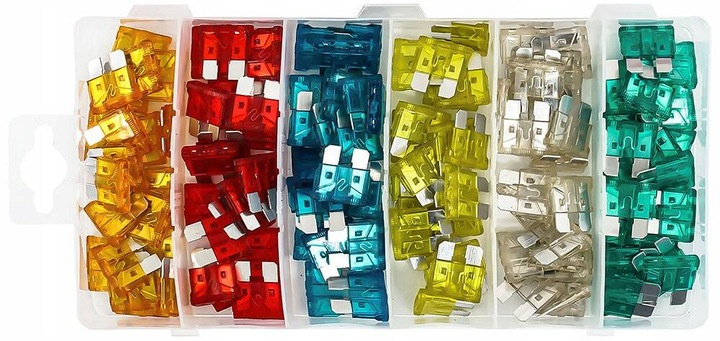 Każdy bezpiecznik jest zapakowany w praktyczne i wygodne pudełko, co ułatwia organizację oraz szybkie znalezienie odpowiedniego bezpiecznika w zależności od potrzeb naprawczych. Zestaw ten zapewnia szeroki zakres mocy bezpieczników, co sprawia, że są one odpowiednie do różnych rodzajów zastosowań w samochodach. Dzięki temu warsztaty i garaże są gotowe do szybkiej i skutecznej naprawy wszelkich problemów związanych z przeciążeniami elektrycznymi.