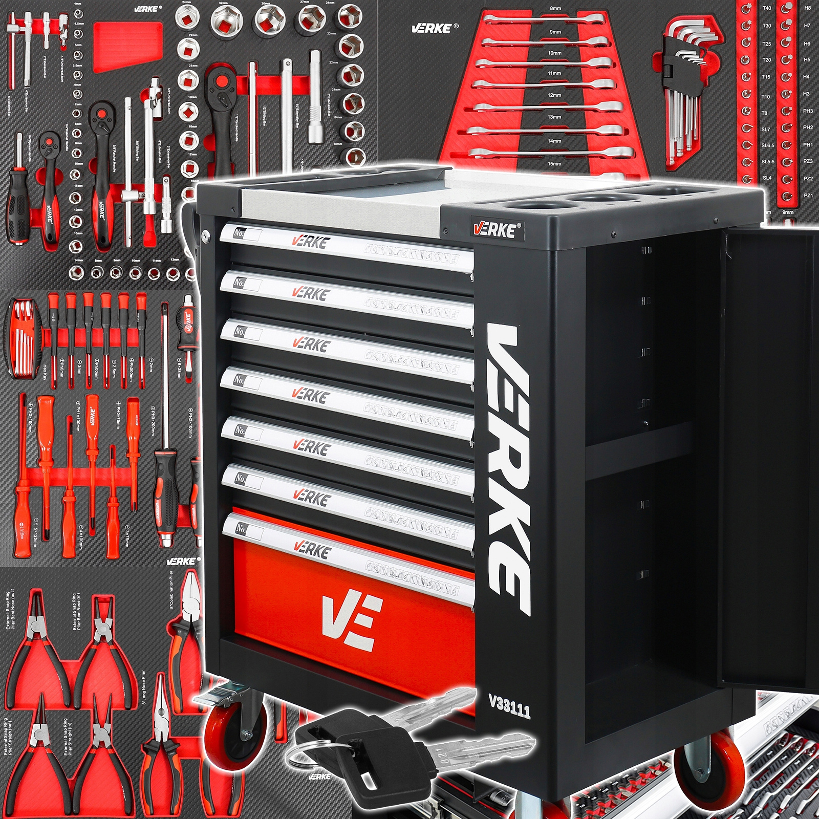 VERKE V33106 SZAFKA NARZĘDZIOWA 7+1 SZUFLAD + 155 NARZĘDZI VERKE