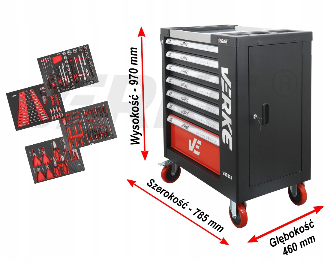 VERKE V33111 SZAFKA NARZĘDZIOWA 7 SZUFLAD+ 154 NARZĘDZI