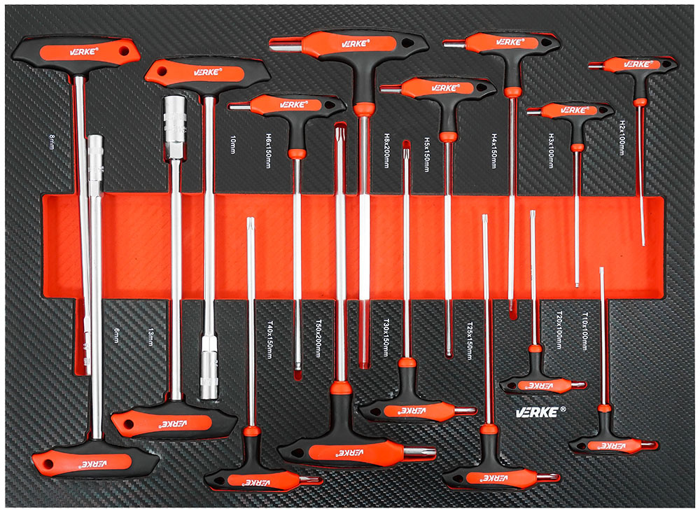 - 6 szt. - wkrętak z uchwytem typu „T”: Torx T10x100, T20x100, T25x150, T30x150, T40x150, T50x200
