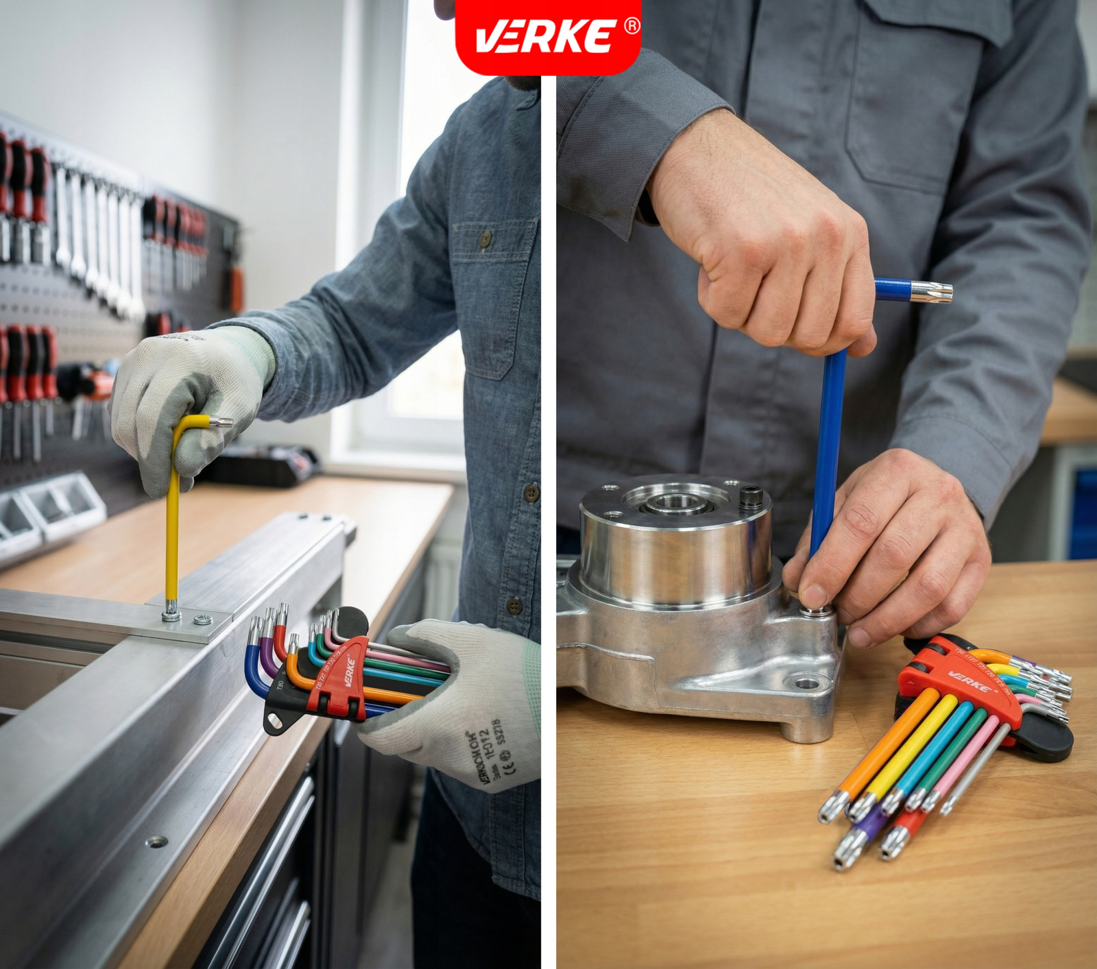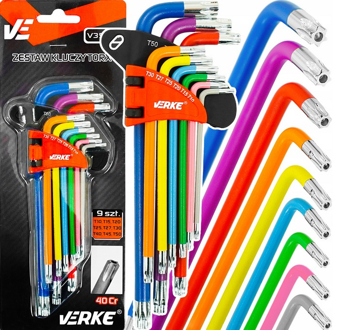 Zestaw kolorowych kluczy TORX marki Verke® to połączenie solidnego wykonania, wysokiej jakości materiałów oraz przemyślanej ergonomii. Produkt został stworzony z myślą o użytkownikach, którzy oczekują niezawodnych narzędzi, łatwej identyfikacji rozmiarów oraz maksymalnego komfortu pracy zarówno w warunkach warsztatowych, jak i podczas domowych napraw. Dzięki kolorowemu oznakowaniu każdy klucz jest natychmiast rozpoznawalny, co znacząco przyspiesza pracę.