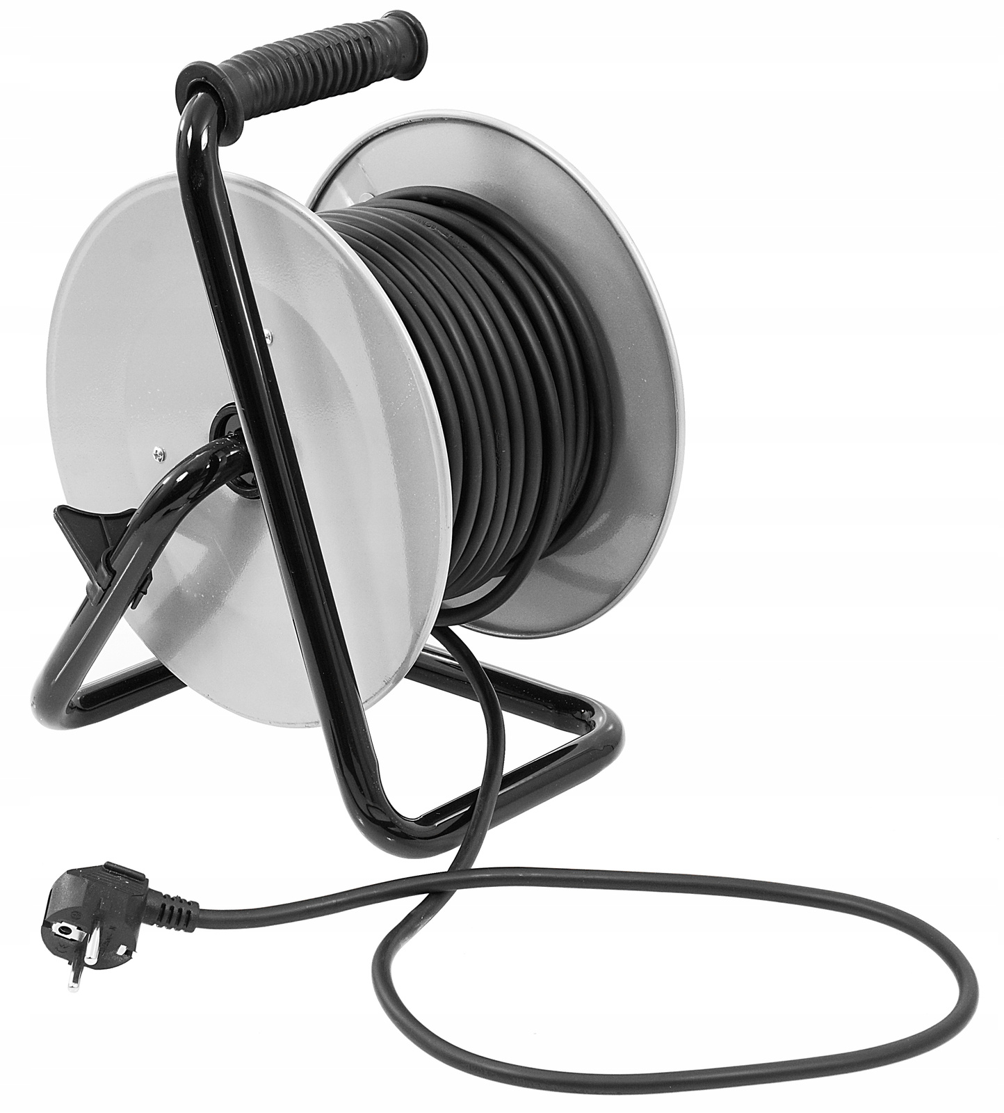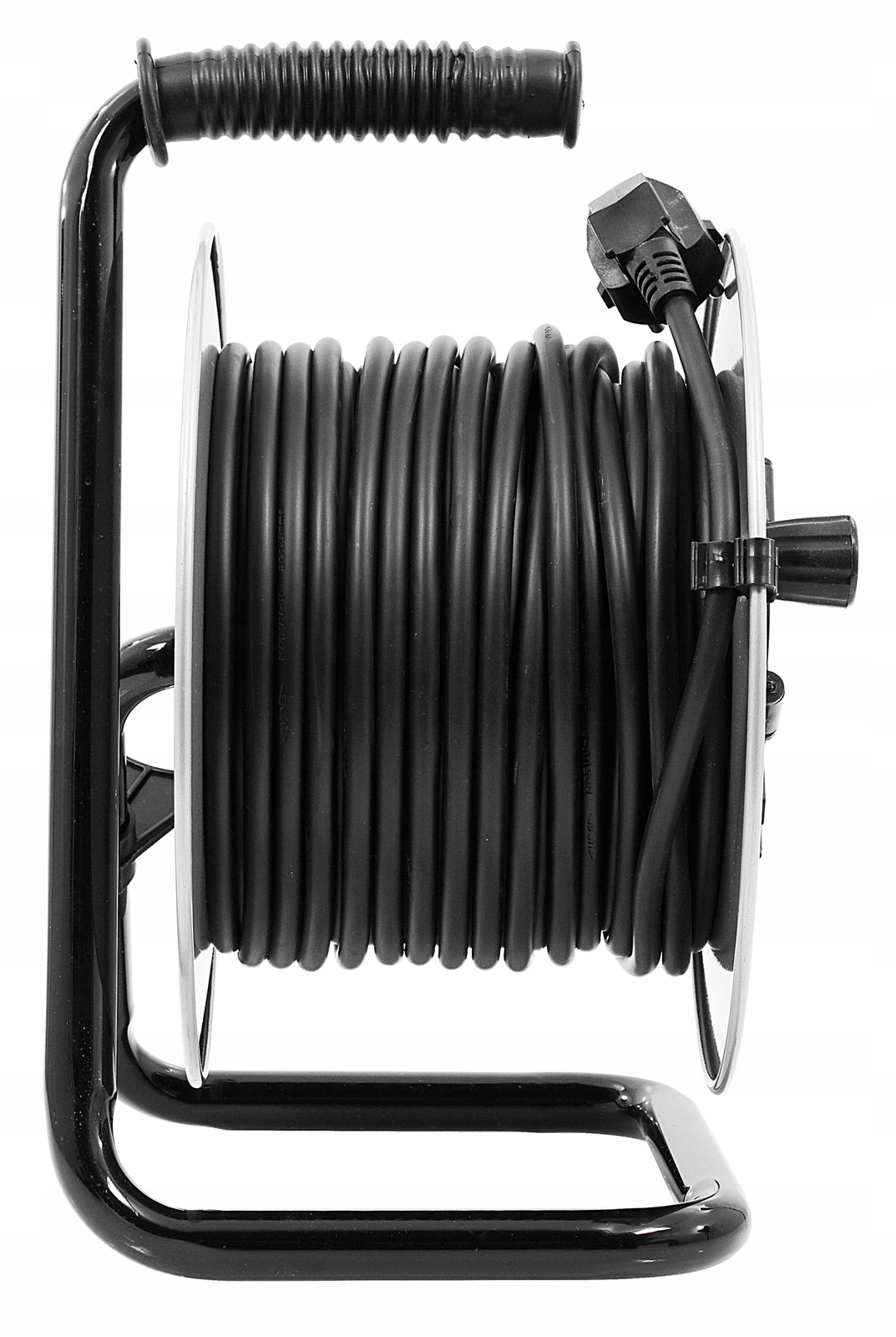 • Łatwe zwijanie – korbka zamontowana na bębnie pozwala na szybkie zwinięcie kabla po zakończonej pracy.