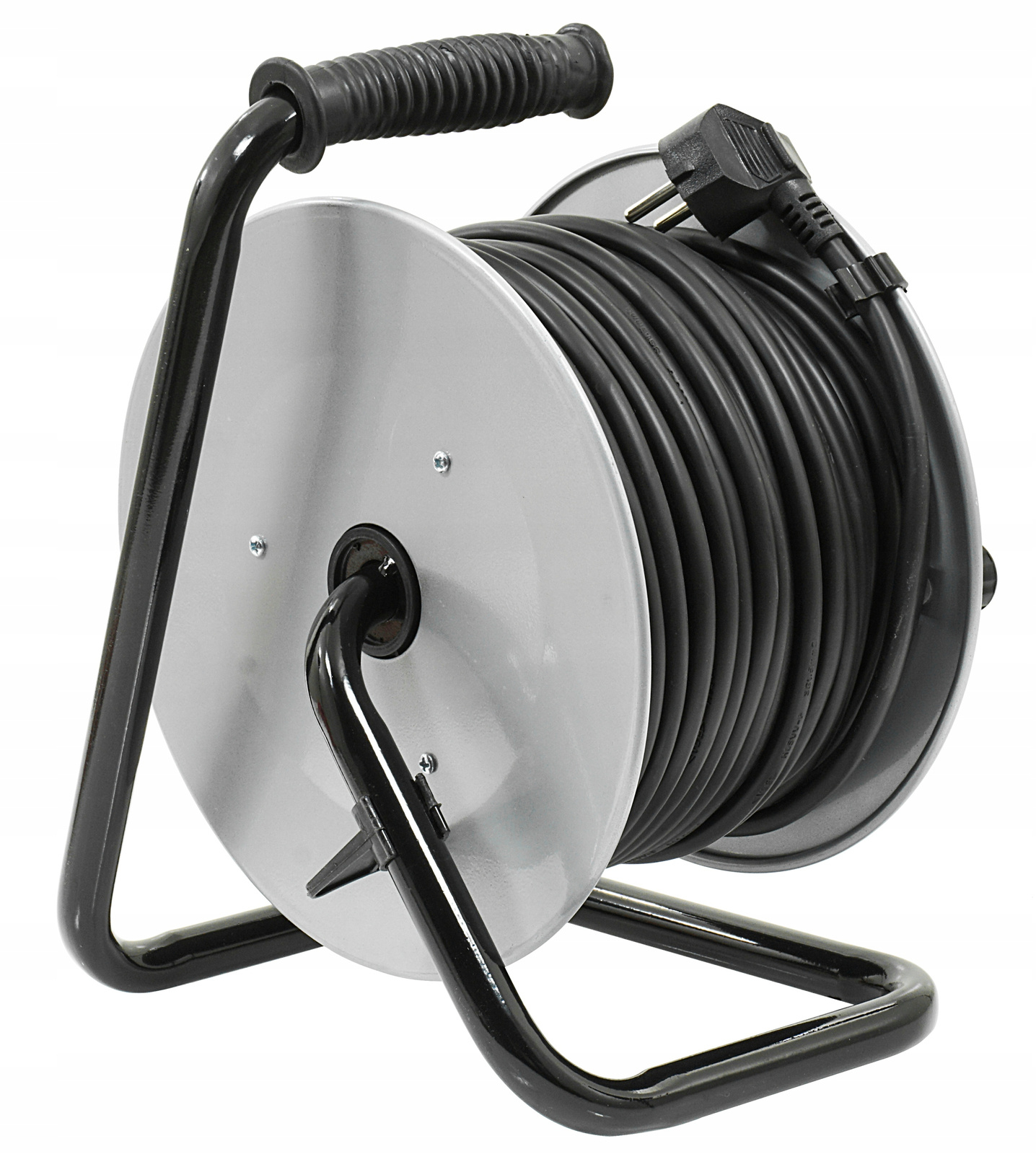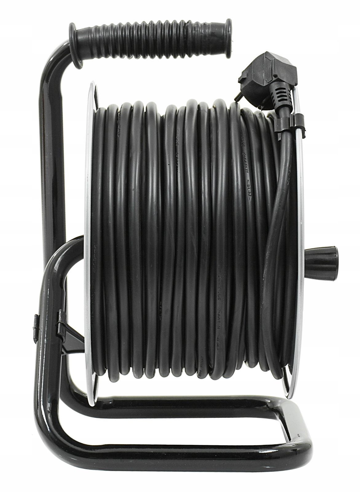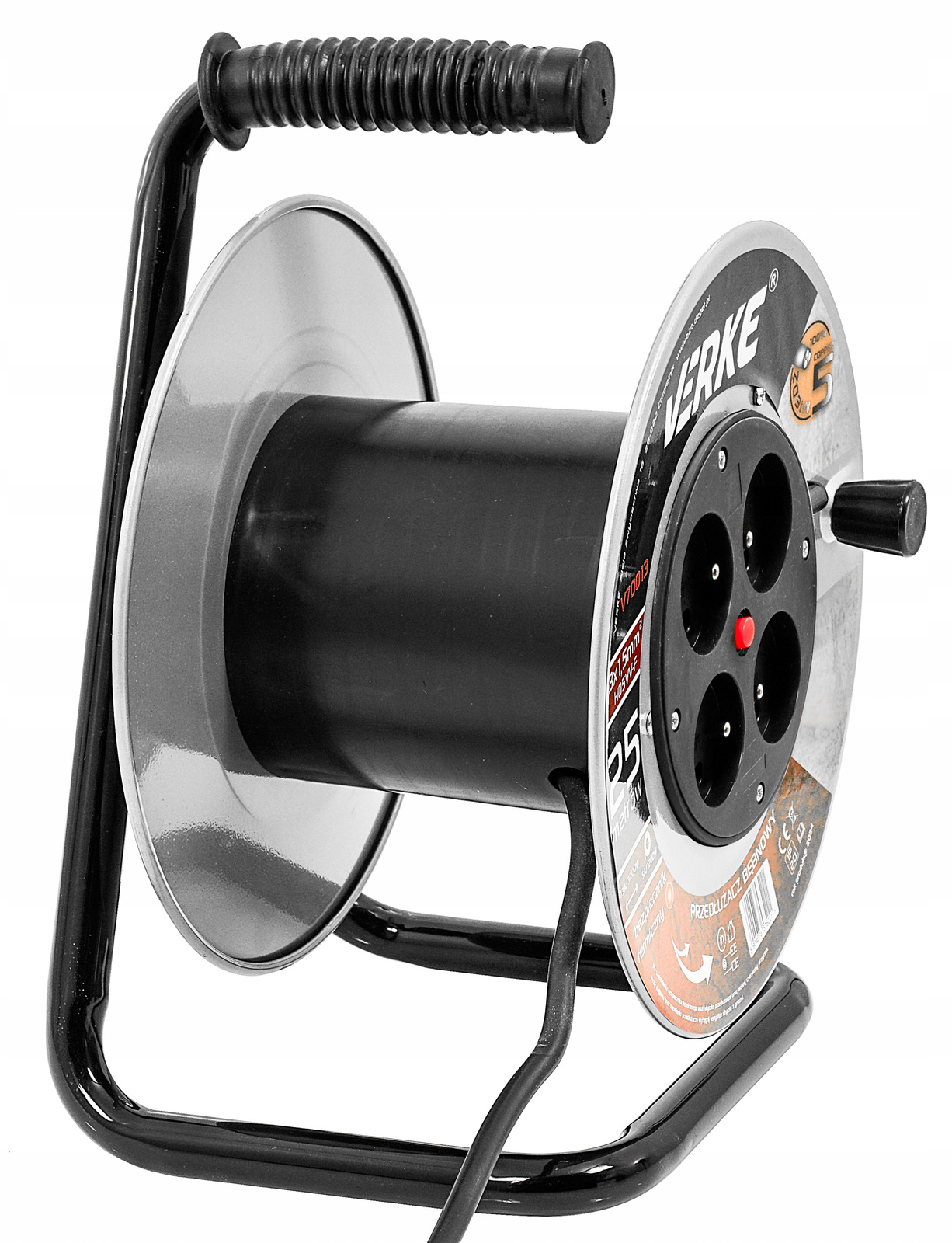 - Łatwe zwijanie – dzięki zamontowanej korbce, szybkie zwinięcie kabla po skończonej pracy.