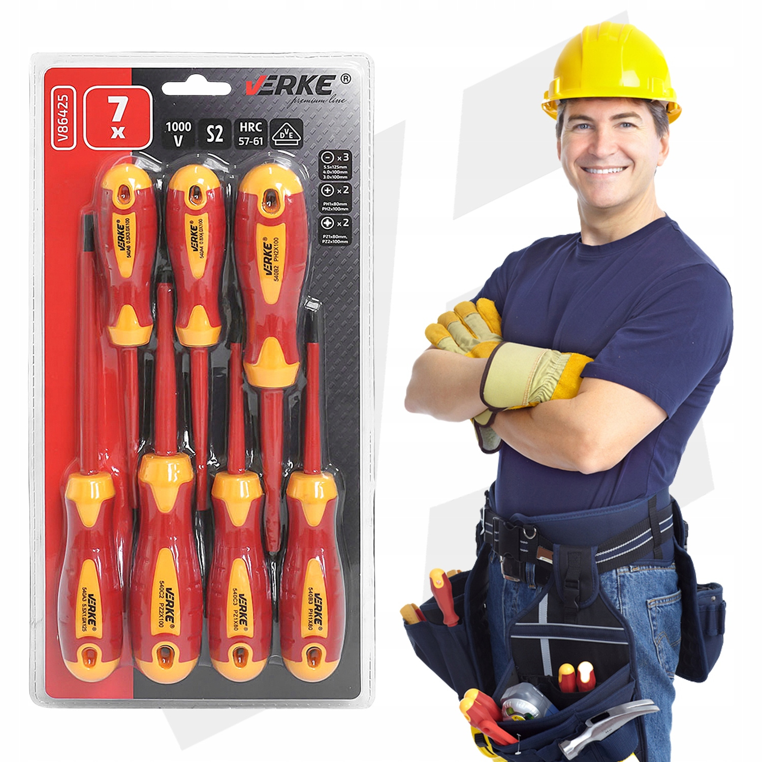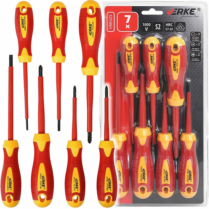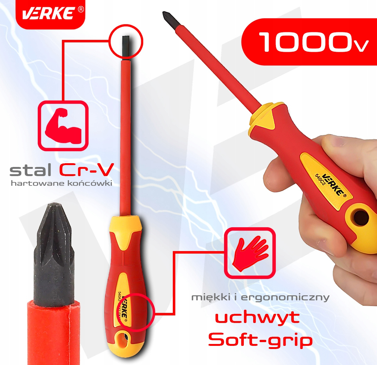 - Wysokiej jakości zestaw wkrętaków izolowanych VERKE Premium Line.