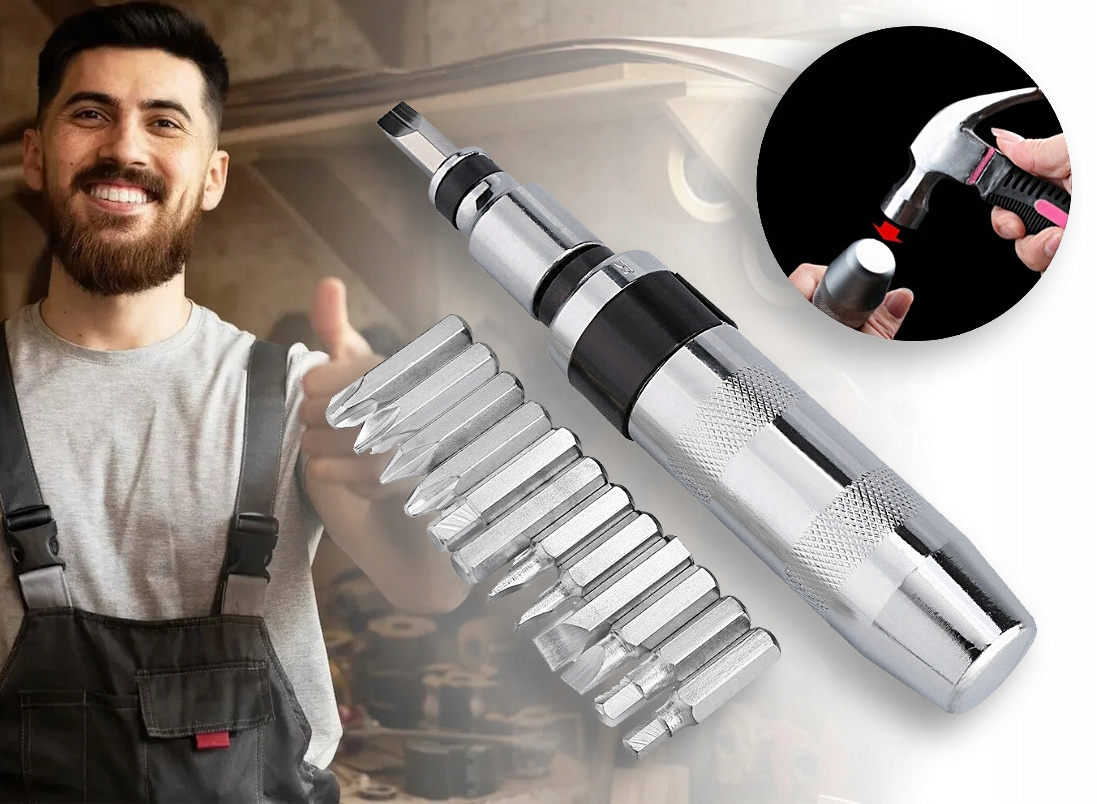 ✔️ Wkrętak przekładający energię kinetyczną wytworzoną podczas uderzenia np. młotkiem, na ruch obrotowy głowicy.
