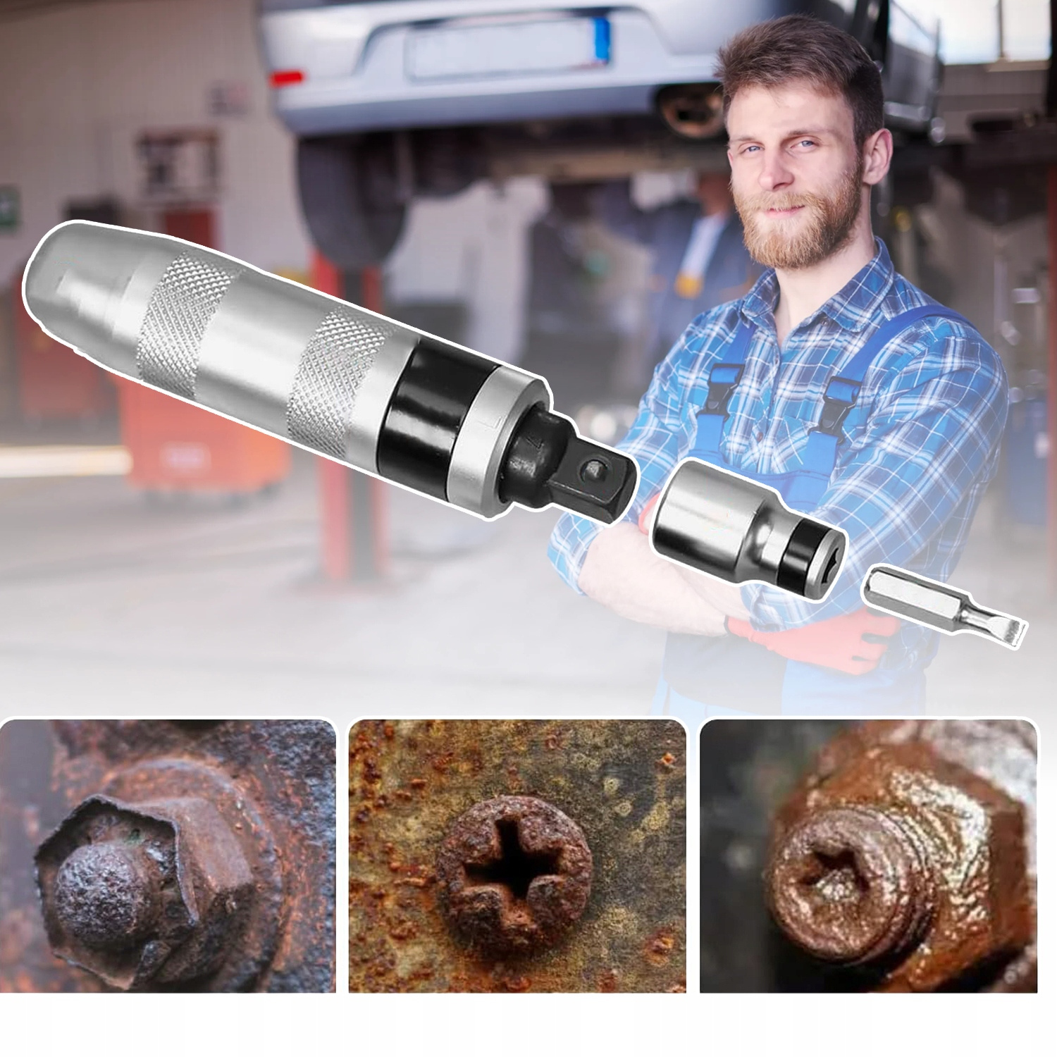 Szybkie odkręcanie zapieczonych śrub jest możliwe za sprawą wykorzystywania zamiany energii kinetycznej uderzenia młotka na ruch obrotowy końcówki śrubokrętowej.