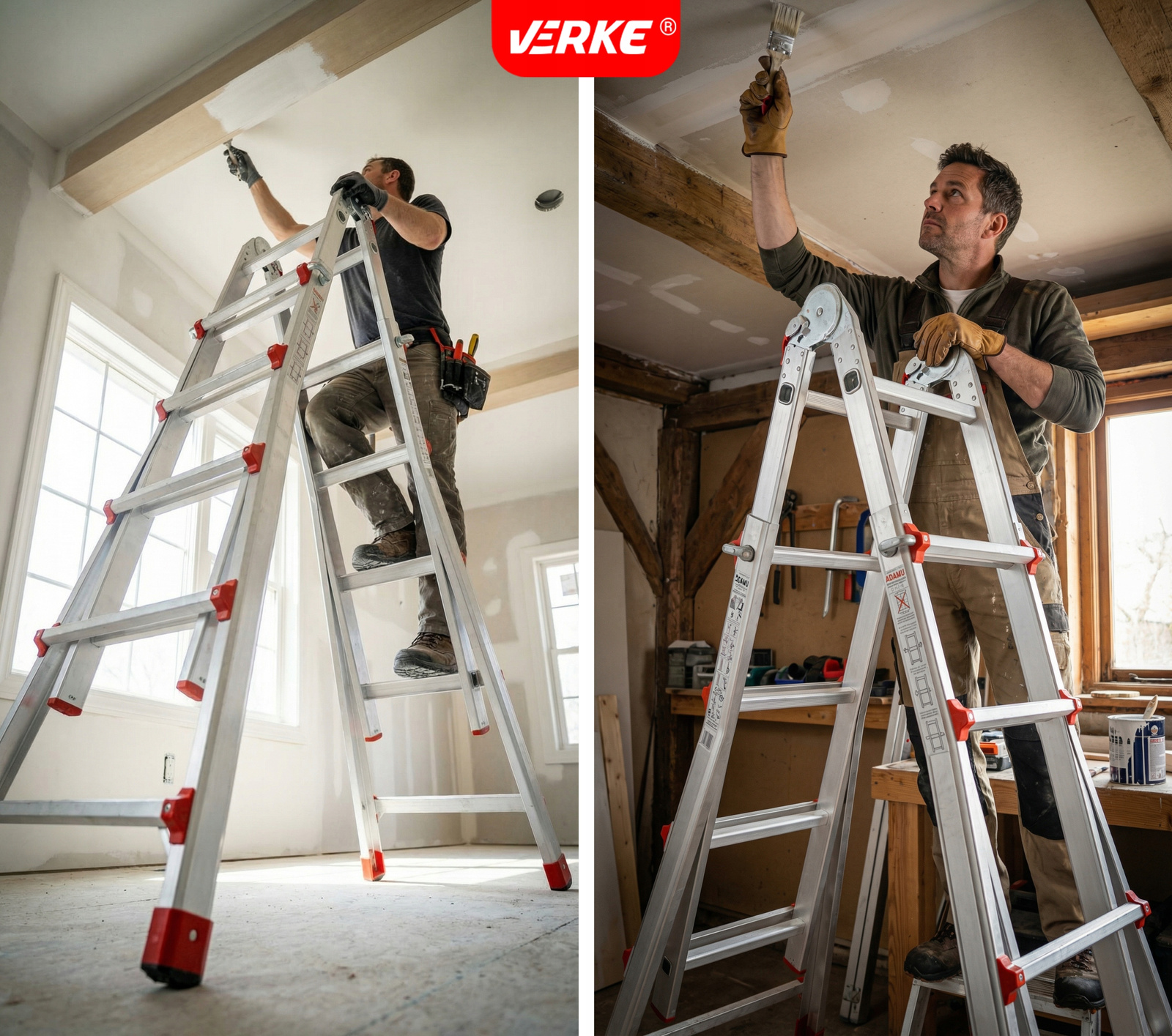 Producent VERKE słynie z tworzenia sprzętu, który łączy przemyślaną konstrukcję z solidnością i funkcjonalnością. Każdy element drabiny został zaprojektowany z myślą o intensywnym użytkowaniu – od stopni odpornych na zużycie, przez trwałe przeguby, aż po mocne blokady systemowe. Dzięki temu produkt sprawdzi się zarówno w gospodarstwach domowych, jak i w profesjonalnych firmach usługowych.
