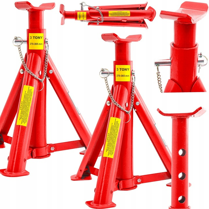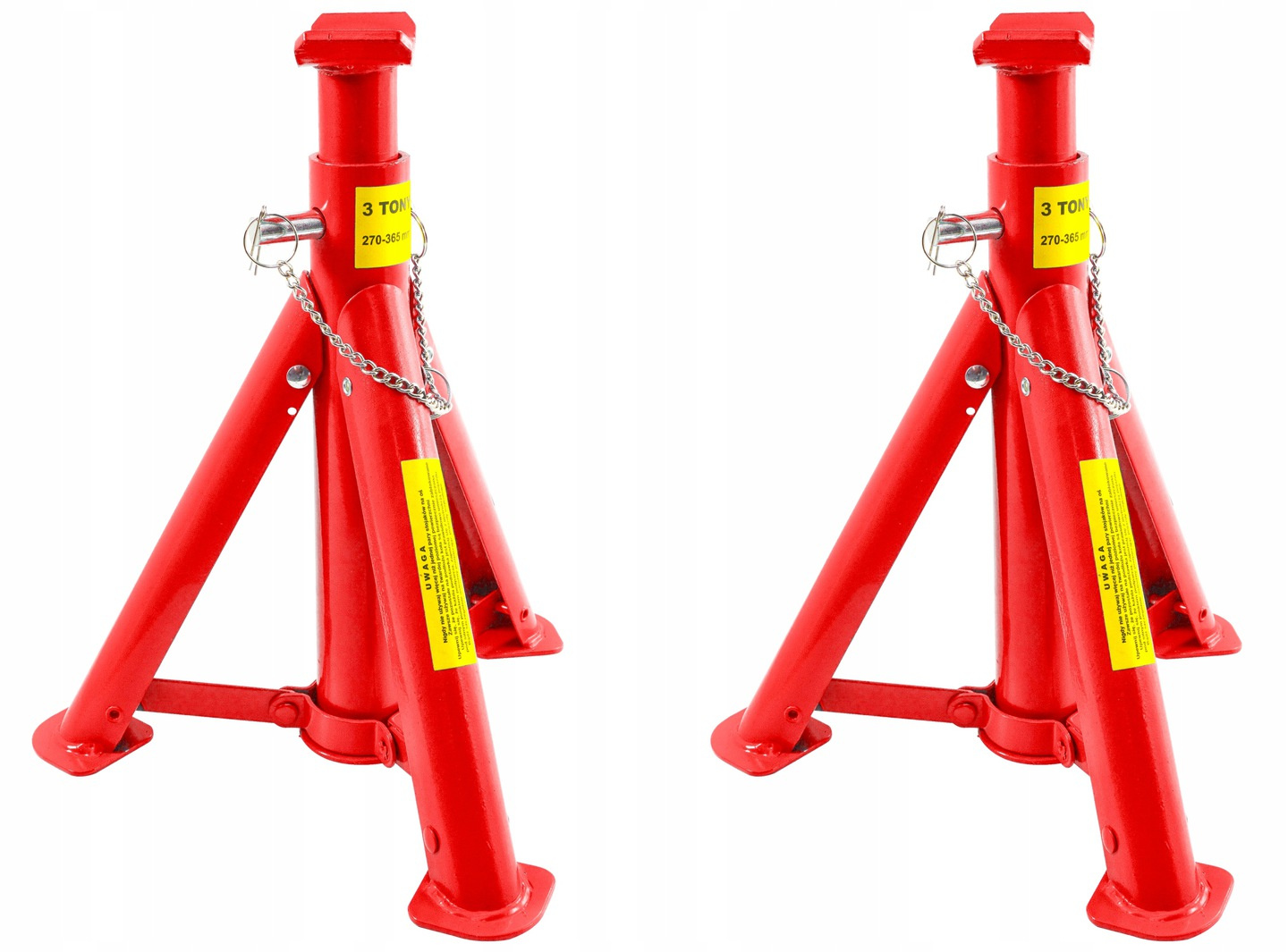 Podstawki pod samochód posiadają trzy składane łapy oraz trójstopniową regulację wysokości. Bolec zabezpieczający trwale połączony z podstawą. Doskonałe do odciążenia lewarka. Należą do podstawowego wyposażenia każdego warsztatu.