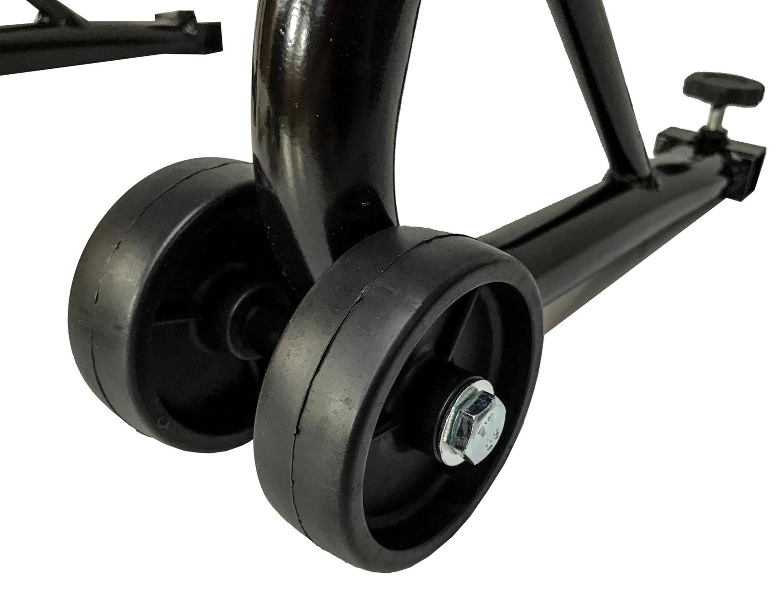 Wysokiej jakości stojak motocyklowy na przód i tył pod motocykl. Stojak przydatny w każdym garażu oraz warsztacie. Dzięki niemu w łatwy sposób dokonasz napraw oraz konserwacji, ale i również umyjesz opony, posmarujesz, wymienisz łańcuch, itd. Sprawdza się również podczas przechowywania motocykla, ponieważ zajmuje wtedy mniej miejsca, opony nie są obciążone, zatem możesz zapomnieć o ryzyku odkształcenia opon.