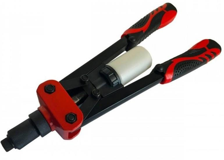 Nitownica ręczna przeznaczona do zrywalnych nitów aluminiowych, miedzianych, stalowych i nierdzewnych w zakresie od 3,2 mm do 4,8 mm. Korpus i rękojeść wykonane ze stali węglowej. Mechanizm ściągający posiada trzy szczęki. Dzięki odpowiedniej grubości ścianek i właściwie dobranej długości ramion używamy nitownicy bez użycia dużych nakładów sił. Zbiornik na zerwane rdzenie nitów pozwala utrzymać miejsce pracy w czystości.