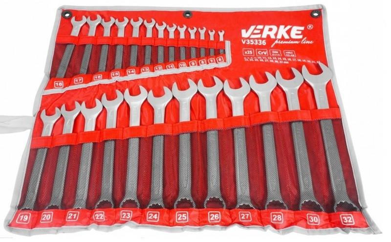 VERKE KLUCZE PŁASKO-OCZKOWE 25 EL. 6-32mm POKROWIEC PREMIUM LINE