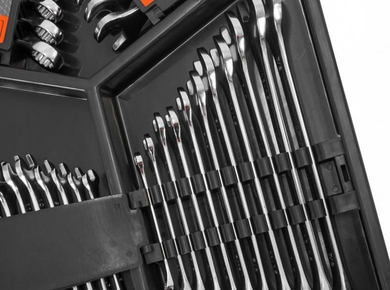 - klucze płasko-oczkowe metryczne długie: 6, 7, 8, 9, 10, 11, 12, 13, 14, 15, 16, 17, 18, 19 mm