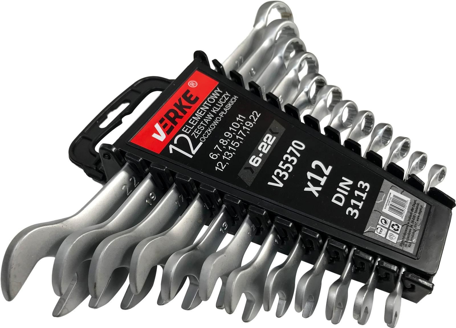VERKE KLUCZE PŁASKO OCZKOWE 6-22mm 12 szt KLIP