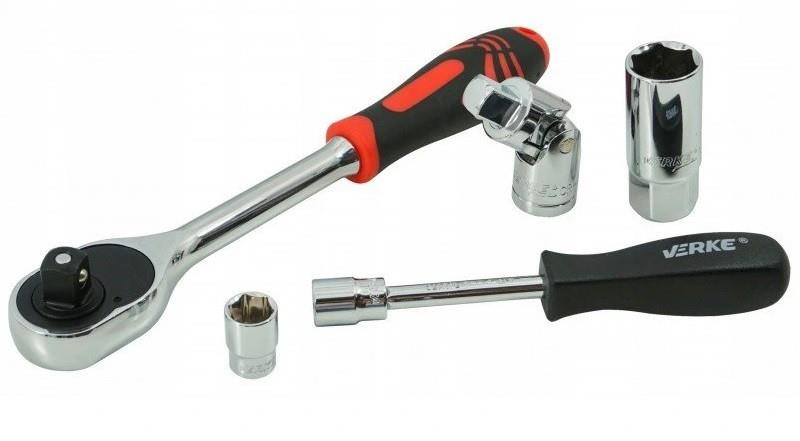 Profesjonalny zestaw narzędziowy 94 elementy. Klucze nasadowe, jak i napęd nasadek, zostały wykonane z wytrzymałej narzędziowej stali chromowo-wanadowej CR-V. Grzechotki posiadają 72 zęby (skok roboczy 5 stopni). Narzędzia produkowane są na Tajwanie, przy użyciu najwyższej jakości materiałów, najnowszych technologii oraz patentów. Dzięki połączeniu tych czynników otrzymujemy produkt profesjonalnej jakości o ogromnej wytrzymałości. Narzędzia firmy VERKE premium line, dzięki wysokiej jakości wykonania i trwałości oraz innowacyjnym rozwiązaniom, zyskują coraz szerszą grupę zadowolonych użytkowników. Różnorodność produktów VERKE, daje możliwość szerokiego zakresu zastosowania od profesjonalnych warsztatów samochodowych po przydomowe garaże.